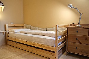 Casa Bibi è un appartamento trilocale situato a Campitello di Fassa, in una posizione strategica accanto al centro di Campitello e a soli 750 metri dalla Funivia del Col Rodella. L’immobile, situato al piano terra, si distingue per il suo stile caratteristico che combina il fascino rustico delle tradizionali baite di montagna con il comfort moderno.